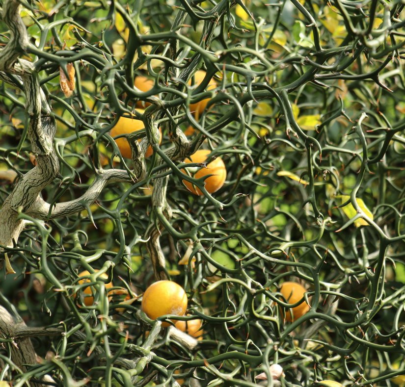 L’Arancio trifogliato o Ponciro (Poncirus trifoliata L. o Citrus triptera) è un agrume originario della Cina settentrionale e centrale. Il nome Ponciro deriva probabilmente dal francese pomme de Syrie (pomo della Siria). E’ un agrume a foglia caduca